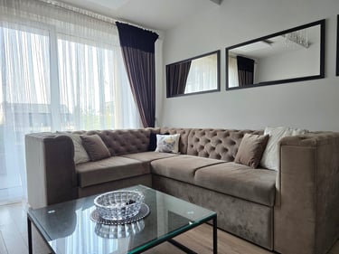 Stilingai įrengti vieno miegamojo apartamentai Palangos centre, prestižiniame „Malūno Vilų“ komplekse. Šie apartamentai išsiskiria subtiliu interjeru, kokybiškais baldais ir išgrynintu stiliumi, kuriame dera modernumas ir jaukumas.