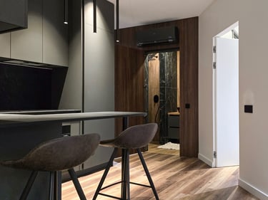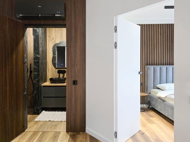 Šie išskirtiniai apartamentai sukurti ieškantiems ramybės, estetikos ir tikros kokybės. Subtilus, modernus interjeras, natūralios medžiagos ir ramios spalvos kuria harmoningą, jaukią aplinką, kurioje lengva atsipalaiduoti ir pamiršti kasdienį skubėjimą. Apgalvotas išplanavimas su dviem elegantiškais miegamaisiais ir dviem atskirais vonios kambariais užtikrina komfortą, privatumą ir patogų poilsį tiek poroms, tiek šeimoms ar nedidelėms grupėms. Privatus kiemelis ir terasa kviečia mėgautis lėtais rytais bei jaukiais vakarais, o sūkurinė vonia po atviru dangumi suteikia ypatingą atsipalaidavimo pojūtį bet kuriuo paros metu. Čia laikas sulėtėja, prabanga atsiskleidžia per komfortą, o kiekviena detalė skirta kokybiškam, ramiam poilsiui prie jūros – romantiškam savaitgaliui ar stilingoms atostogoms.